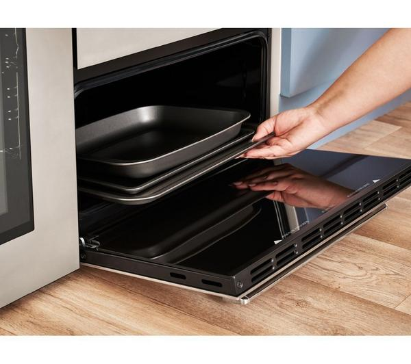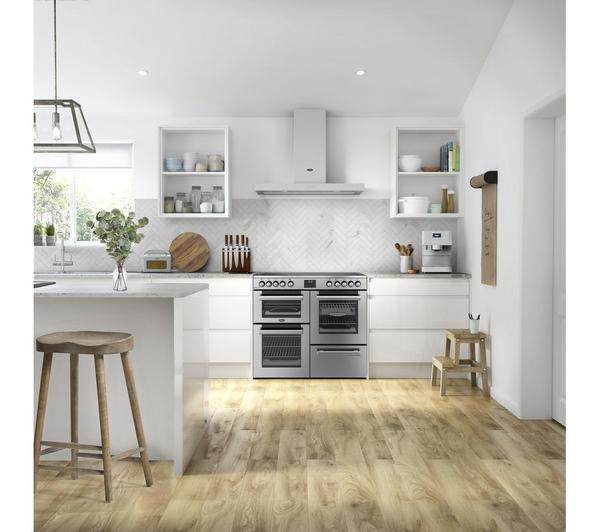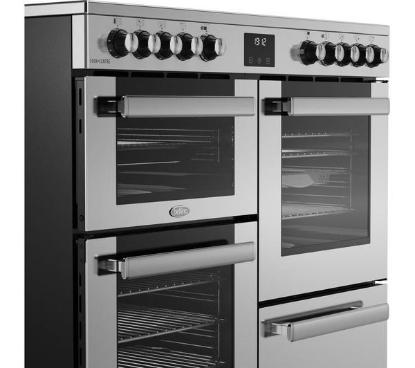 BELLING Cookcentre 100E Stainless Steel, enjoy versatile cooking with two fan ovens and a 5-zone ceramic hob. Features AirFry for crispy results, Easy-Clean enamel, and a Maxi-Clock Programmer. Fast UK delivery.