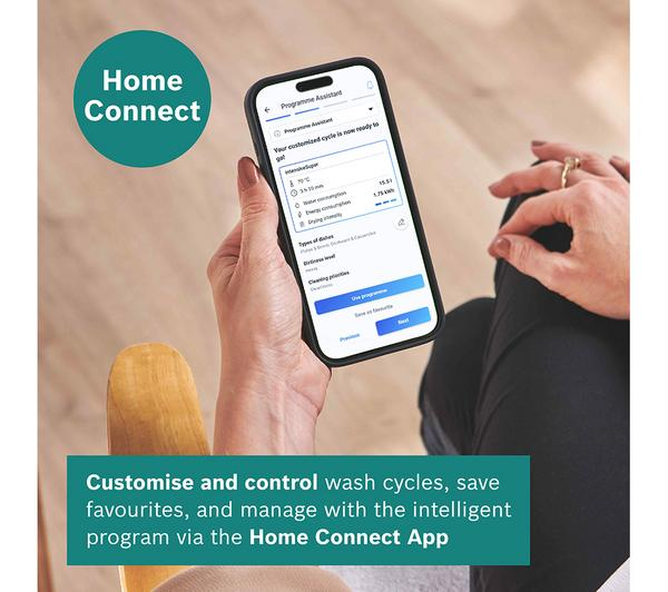 - Home Connect: Control and monitor your dishwasher remotely via the intuitive app.