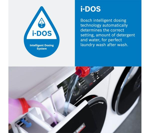 - i-DOS Automatic Dosing — Accurately dispenses the precise amount of detergent and softener required, preventing waste and ensuring optimal fabric care.