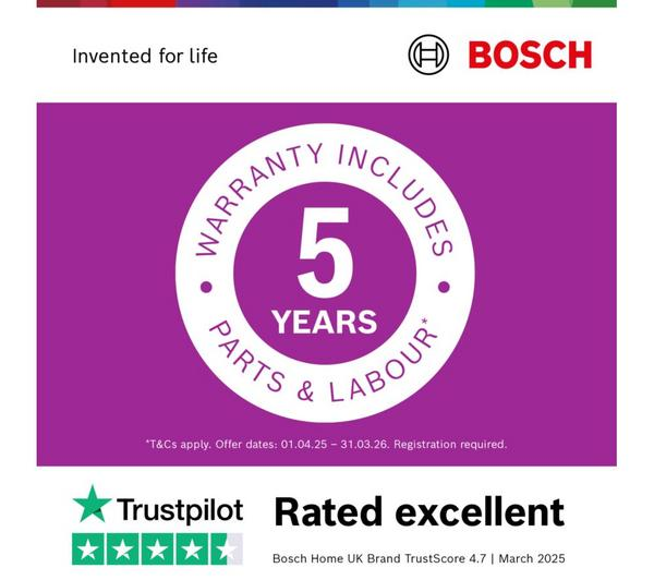 Your peace of mind is paramount. The BOSCH Series 6 WGG254F1GB White 10kg Washing Machine comes with a comprehensive 2-year manufacturer’s warranty. Should you encounter any issues or have questions regarding its operation, our dedicated customer support team is available to assist you.