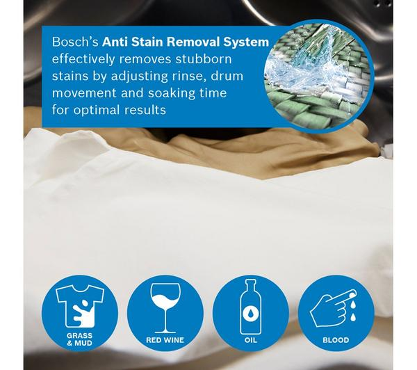 For those moments when laundry day is rushed, the SpeedPerfect function can cut wash cycle times by up to 65%, delivering immaculate results without compromising on cleanliness. The innovative Iron Assist feature uses steam to relax fibres and reduce creases, meaning you can spend less time ironing and more time enjoying your day. This Bosch Series 8 WGB256A2GB washing machine truly streamlines your chores, offering convenience and exceptional care for all your garments.