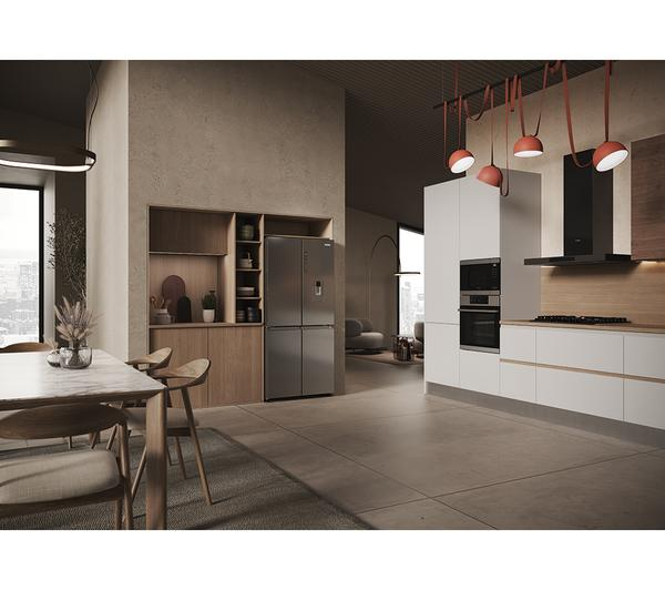 The Haier HCR3818EWMM Fridge Freezer Platinum – Inox is ideal for families and individuals looking for a reliable, modern, and spacious appliance. Its advanced features like Total No Frost and Air Surround Fresher Tech appeal to those who value food preservation and ease of maintenance. The integrated water dispenser is a significant plus for anyone who enjoys convenient access to chilled water. Its stylish platinum inox finish ensures it complements a variety of kitchen decors, making it a practical and aesthetically pleasing choice for many households.