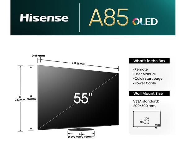 HISENSE 55A85NTUK 55 inch OLED TV – Smart 4K HDR