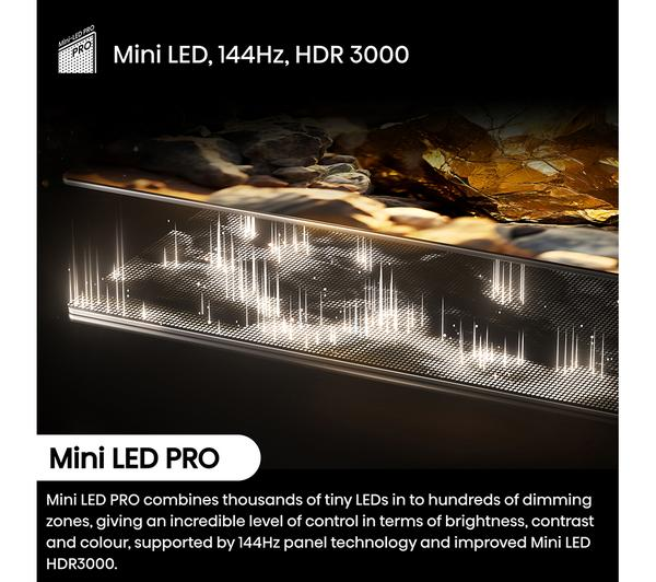 - Mini LED Backlighting — Utilises thousands of tiny LEDs across hundreds of precise dimming zones for superior contrast and brightness control, eliminating washed-out images.