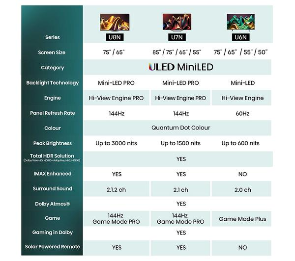 - Hisense 75U8NQTUK 75 inch Mini LED 4K TV