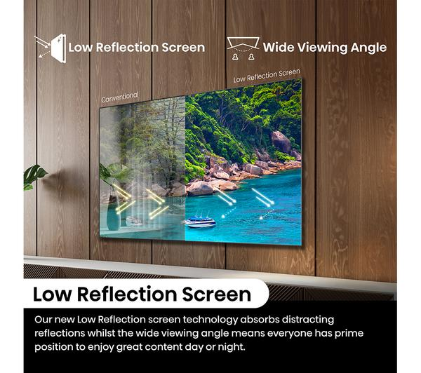 - Wide Viewing Angle & Low Reflection — Ensures a great picture for everyone in the room, regardless of their seating position, minimising distracting glare.