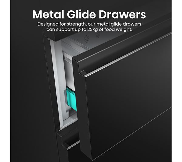 - Effortlessly organise and retrieve frozen goods with the smooth-operating glide drawers.