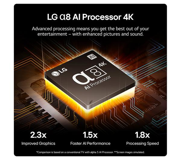 - α8 AI Processor — Intelligent processing for sharper images and lifelike sound, borrowing from LG’s OLED expertise.