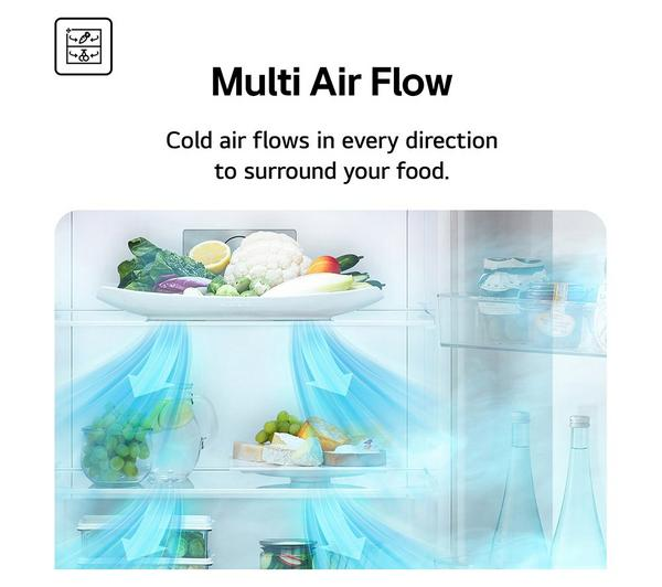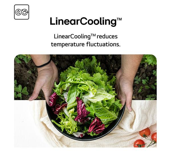 The LG NatureFRESH GSLC40PYPE Silver Fridge Freezer – American-Style elevates your food storage experience with its advanced cooling system. The innovative NatureFRESH technology, powered by Linear Cooling, drastically reduces temperature fluctuations within the fridge. This precise temperature management is crucial for extending the life of your groceries, maintaining the crispness of salads, and preserving the quality of delicate items, ultimately leading to less waste and more enjoyment of your food.