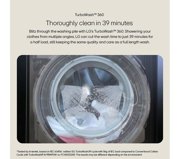 - TurboWash 360° — Cleans a full load in just 39 minutes for ultimate time-saving.
