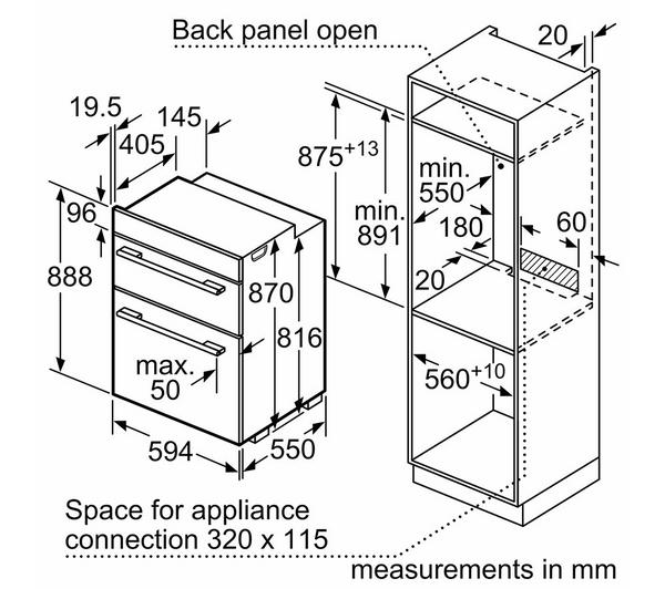 - 595mm (H) x 594mm (W) x 568mm (D)