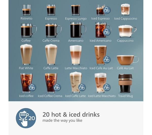 - Unlock a world of coffee diversity with 20 pre-programmed beverage options.