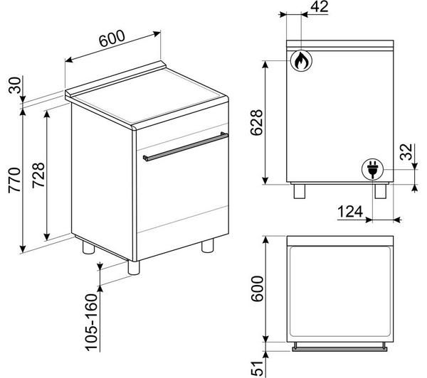 The SMEG SUK61PX8 is a freestanding 60cm dual fuel cooker, designed to be positioned independently within your kitchen space.